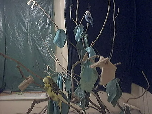 TREE BRANCHES IN AN INDOOR AVIARY