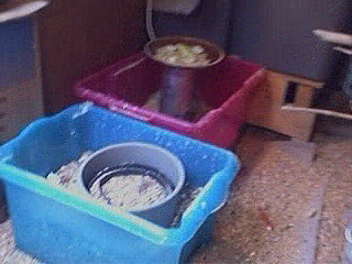 Use the kitchen sink as this large volume of water will stay warm longer and give you time to consider