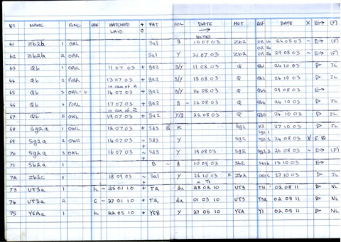 #, NAME, DATE ACQUIRED, BREEDER/RING, GENDER, COLOUR, SOURCE, DATE OF DEATH OR TRANSFER, RECIPIENT