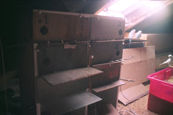 Under these conditions supplementary interior lighting of the nests is necessary to prevent a possible visual defect called amblyopia from developing. What the threshold illumination to prevent this condition is, I do not know. However the illumination from these lamps which are scrapped from a car is sufficient to prevent the condition. 5 Watt bulbs are adequate for all the nests