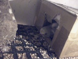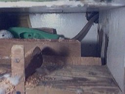 This nest went through many successful phases. I initially tried it with a circular cutout in a rubber sheet to serve as a concave. Later when the chicks were about a couple of weeks old I fitted a small cardboard box for them. At this stage I didn't know if the chicks would go into the box and if they did would the hen recognize them as her own and feed them. Of course she did and naturally she eyed it up as a nursery compartment for herself. Despite covering the box with packing tape to strengthen it she succeeded in demolishing it! This was not out of spite or temper - all hens attempt to destroy a nest before accepting it for security reasons.